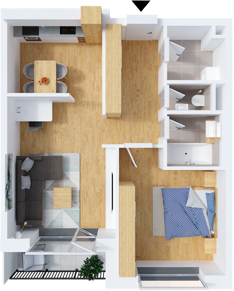 | 1 | 303 | 3NP | 2 | 2 | 56.03 m2 | 4.7 m2 | 60.73 m2 | - | - | - | - | Predaný |